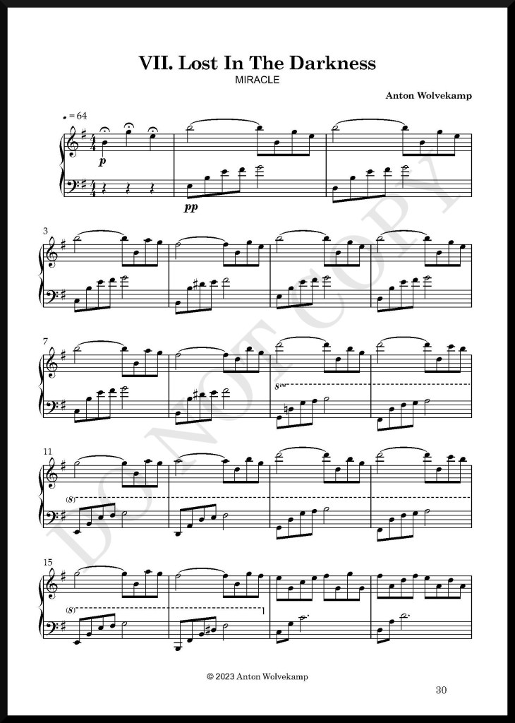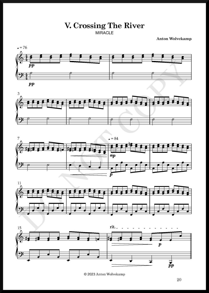 Miracle – A Musical Fairy Tale for Solo Piano is gecomponeerd voor enigszins gevorderde pianisten. De titel, afbeelding en hoofdstukken dagen je uit om tijdens het spelen je fantasie de vrije loop te laten en er je eigen verhaal van te maken. Mijn voorliefde voor fantasy, storytelling, musical, mystiek en spiritualiteit heb ik geprobeerd te vangen in een nieuw boek, ditmaal zonder woorden; de muziek spreekt (hopelijk ook voor jou) voor zich. Voel je vrij om de dynamiek aan te passen waar wenselijk en de sustainpedaal (volop) te benutten. Wil je het (digitale) pianoboek à € 25,00 (in pdf) bestellen? Laat het me weten via de contactpagina.